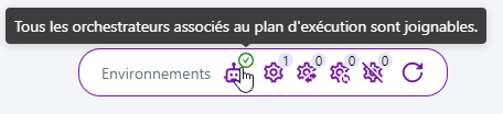 Un récapitulatif des environnements d'exécution et de leurs statuts est visible dans la capsule Environnements des espaces Itération et Suite des campagnes de tests dès lors que leur plan d'exécution contient des tests automatisés qui seront exécutés par un serveur SquashTM Orchestrator.