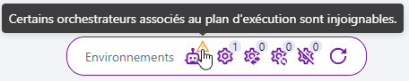 ![]() | Le plan de test est lié à plusieurs projets et au moins un orchestrateur lié au plan de test est injoignable. |